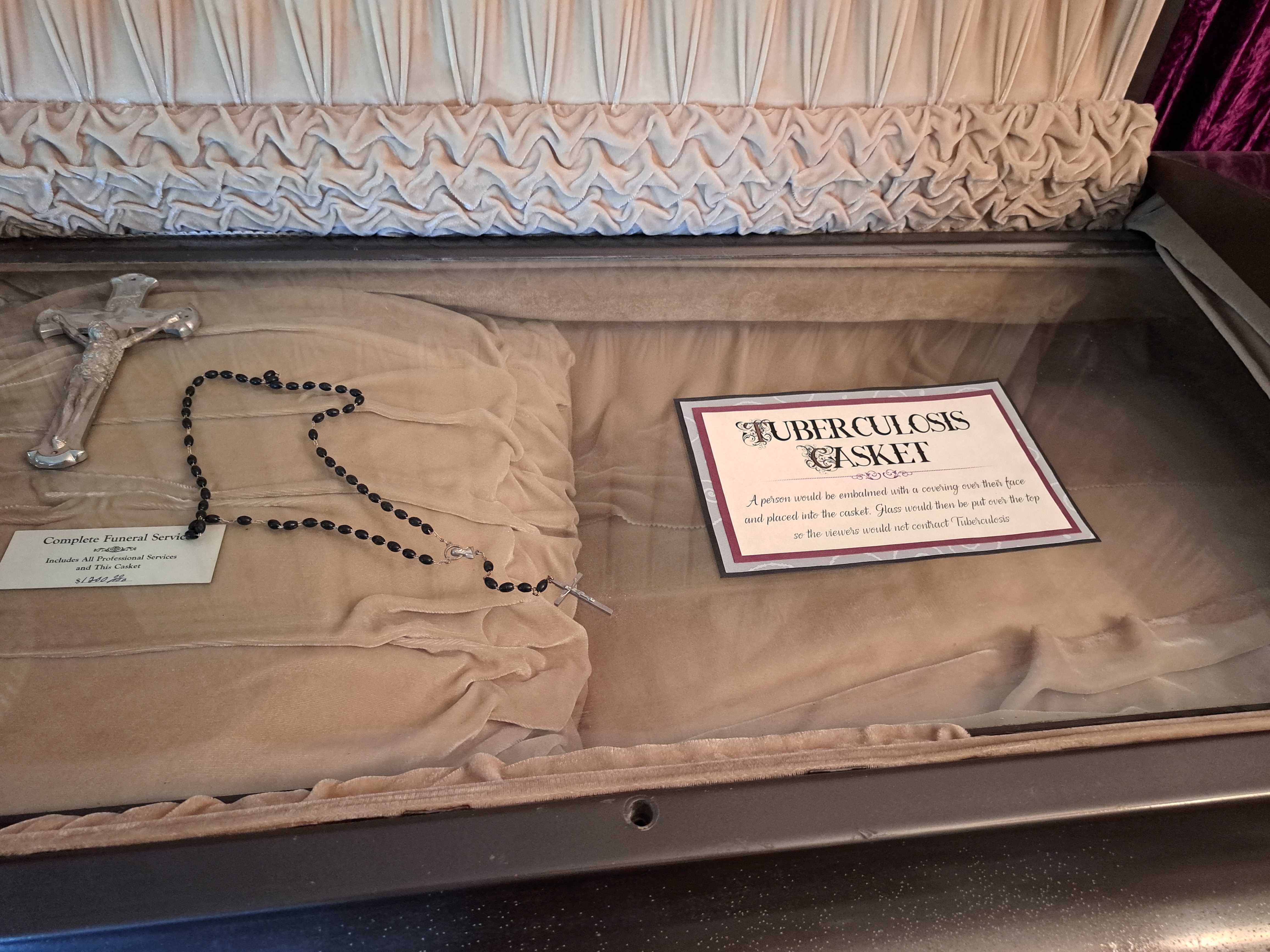 The day I visited this museum was the 8th anniversary of my brother’s death. Typically this is not a good day for me. But I started the day in a really good mood. I was driving 90 minutes to experience something new, which is what I try to do every July 23rd. My brother is no longer able to experience life on this plane, so I try to live it for him. And I know he’d love the Rest in Peace Museum with its tuberculosis caskets, real skeletons and the wide variety of embalming tools from the early 20th century.